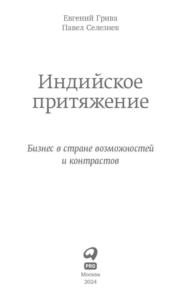Николай Олегович Запрягаев,генеральный директор Корпорации развитияДальнего Востока иАрктикиКнигу Евгения Гривы и Павла Селезнева читаешь на одном дыхании. В ней через призму реального опыта авторов описываются особенности культуры, истории, деловых обычаев и кадровой политики Индии. Цель авторов не в том, чтобы написать путеводитель, а в том, чтобы дать базовые знания о стране и обычаях тому, кто планирует вести бизнес с индийскими партнерами.