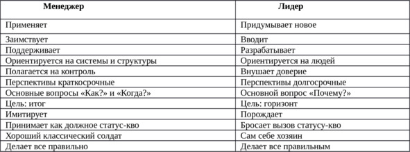 Глава 2. Отличия лидера от менеджера