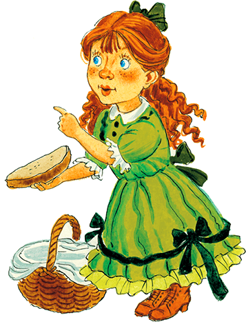 Поблагодарила девочка родную свою тётушку, взяла, как та учила, ленточки, маслица черепок, хлебца ломтик, ветчинки, собралась и пошла.