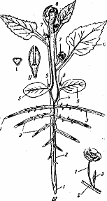 Рис. 1. Схема расположения вегетативных органов у двудольного растения: