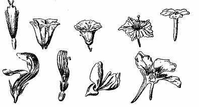 Рис. 4. Формы венчиков декоративных цветочных растений.
