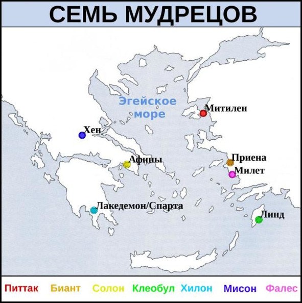 Еще одним этапом перехода от мифа к философии можно считать сочинения и высказывания «Семи мудрецов» в начале VI в. до н. э.