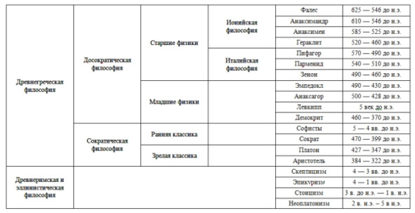 В целом, античная философия охватывает период с 6 века до н. э. по 6 век н. э., до закрытия Юстинианом Академии в 529 г.
