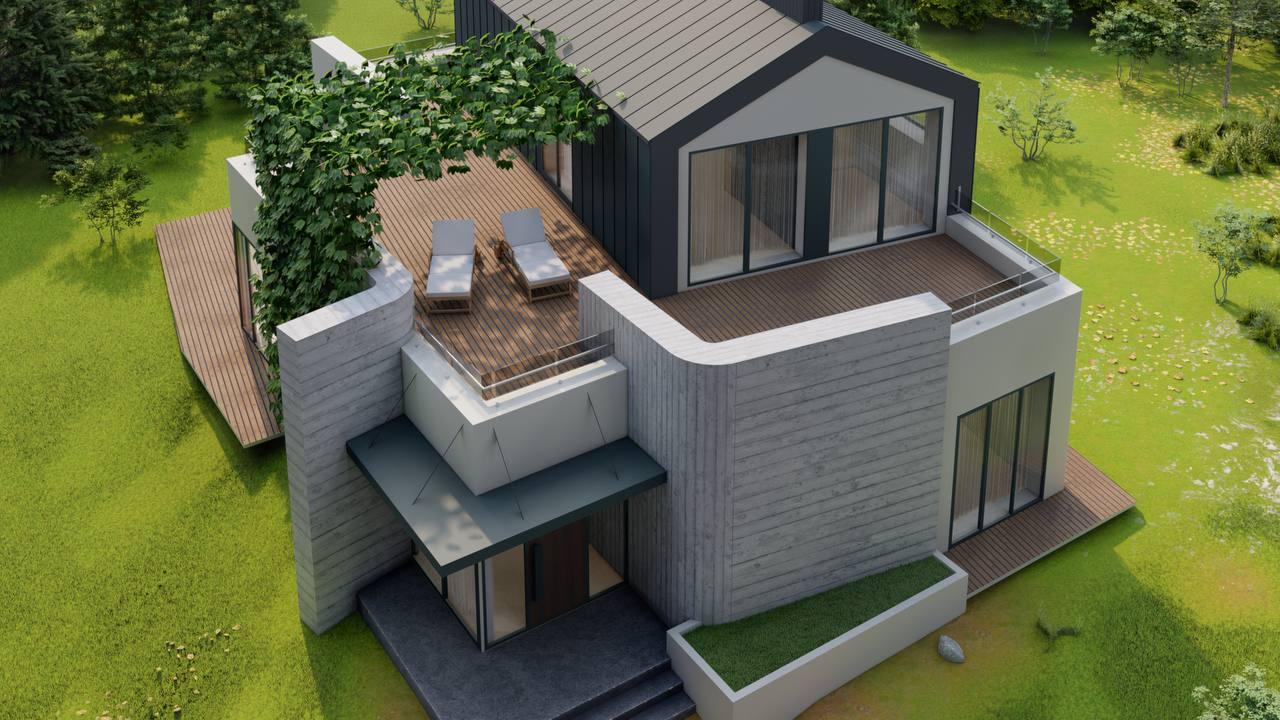 Вот так обычно выглядит визуализация проекта для нашего клиента, с возможностью походить вокруг и внутри дома: