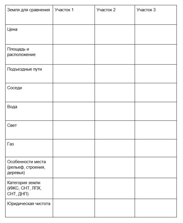 Как видишь, параметров оценки много. Ни о чем не забыть тебе поможет мой чек-лист. Используй его для сравнения понравившихся участков.