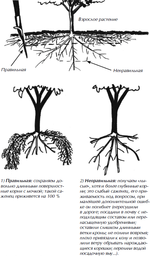 Правильная и неправильная выкопка древесного или кустарникового растения
