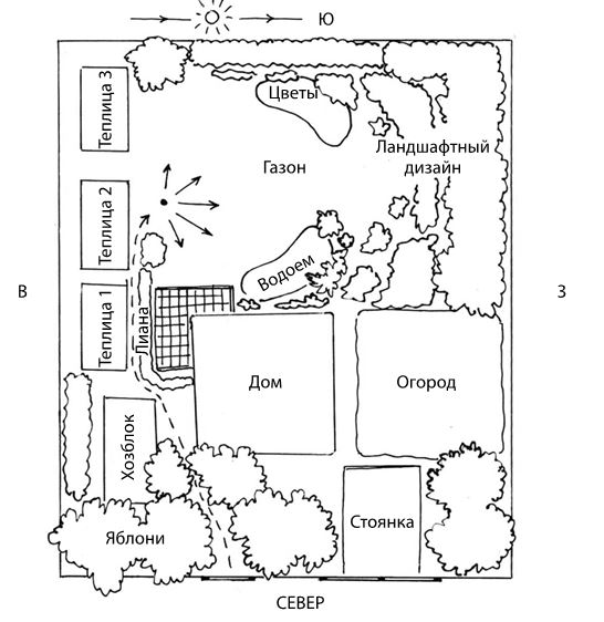 В садоводстве вообще громадную роль играет освещенность солнцем (это урожай!), и грамотный растениевод всегда располагает свои посадки по возможности по росту, чтобы максимально использовать солнечный свет. Самые высокие плодовые деревья у него посажены с севера, затем идут кусты, потом цветники и огород.