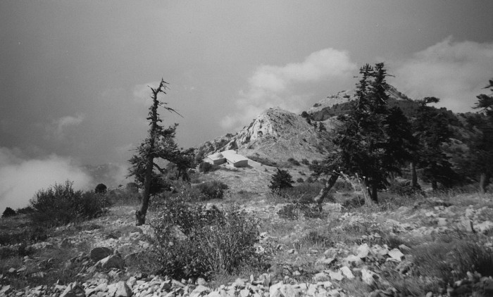 Опасности особой мы не чувствуем, хотя в темноте можно сбиться с дороги и начать блуждать; а в итоге можно, конечно, свалиться и в пропасть. Что трудно сделать днем, оказывается весьма простым ночью. К счастью, мы тогда еще не слышали рассказов о демонских силах, которые, будучи изгнаны подвигами монахов, устремляются в пустынные места и наносят вред одиноким путникам вроде нас. Особенно афонское предание отмечает их деятельность на северном склоне Афона: там, говорят, нередки трагические происшествия. Невозмутимый о. Кирилл вдруг очень к месту вспоминает: «Интересно, удалось ли все-таки истребить волков на Афоне?» Так мы, бредя в ночи, узнаем, что в недавнем прошлом на Афоне развелось множество волков и пришлось принимать особые меры для их истребления. Я инстинктивно нащупываю в кармане свой складной нож. А тропинка, если это только тропинка, а не что-нибудь другое, все тянется и тянется, открывая нам в сумраке новые виды изменчивого афонского ландшафта: то углубляется в лес, чем-то напоминающий иногда русский, то выводит в пустынное скалистое место, то еще куда-нибудь. И в эти минуты, часто останавливаясь, чтобы отдышаться, я вдруг понимаю, что эти наши преходящие трудности – ничто, что потом я долгие годы буду обращаться к этим нелегким теперь минутам и буду просить Бога, чтобы мне еще довелось ступить на эту землю и опять отталкиваться от нее ногами; пусть в такой же кромешной тьме, пусть под палящим солнцем, но только бы вновь ощутить ее под ногами, почувствовать умом и сердцем Но тогда эта неоформившаяся мысль только прилетает откуда-то издалека в гудящую мою голову и так же стремительно исчезает, оставив перед немногими, но назойливыми вопросами: далеко ли еще и туда ли мы идем. Но вот мы на открытом месте, как бы большой площадке, и о. Кирилл говорит, как будто вздыхает: «Ну вот, пришли». Мы различаем обломки какого-то дерева, а чуть дальше – небольшой домик.