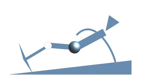 Теперь рассмотрим биомеханические модели при минимальной ангуляции и попытке опорного положения за счет внутренней руки. На рис. 4, диаграмме 6 отображен фронтсайд,