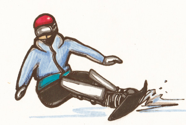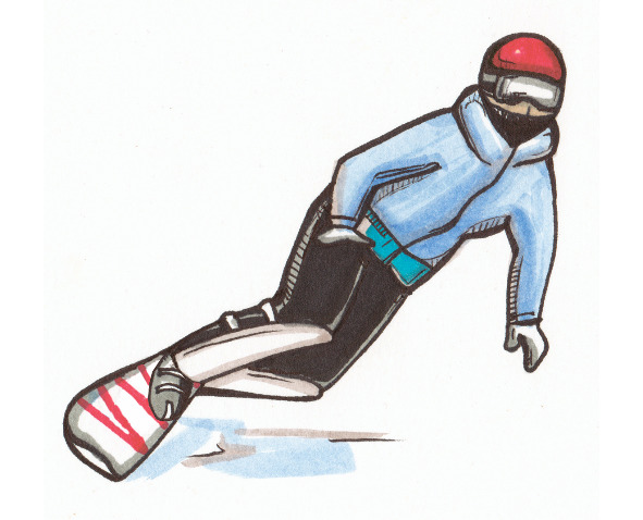 С одной стороны, все очевидно: «заклоняйся» (отклоняйся) в сторону поворота до тех пор, пока угол не станет оптимальным. Но вместе с этим ясно: такое отклонение возможно только до определенного момента, после которого угол эффективной закантовки еще не достигнут, но спортсмен уже не в состоянии удерживать корпус в безопорном положении и сохранять равновесие. В этом кроется принципиальная разница между горными лыжами и сноубордом. Горнолыжник за счет внутренней опорной лыжи при повороте может оставаться в угле заклона, адекватном скорости, создавая эффективный угол закантовки лыж, а сноубордист нет.