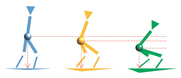 Однако, чтобы при необходимости продолжить увеличивать угол закантовки, нужно совершить более глубокую ангуляцию в коленях. То есть буквально сделать приседание (диаграмма 3.1). За счет этого движения спортсмен, помимо увеличения угла закантовки, также дополнительно создает давление на сноуборд и наст, что приводит к более глубокому врезанию доски, другими словами – спортсмен совершает загрузку, повышая шансы на чистое прохождение поворота без срыва. Вместе с тем центр масс опускается и приближается к точке опоры, что делает спортсмена как физическое тело более устойчивым в условиях наибольшего воздействия на него выталкивающих физических сил.