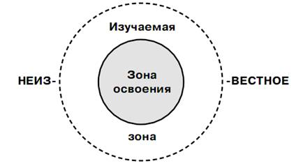На наш взгляд, ответ тут может быть только один: наиболее продуктивным для развития как теоретической, так и прикладной науки является концентрическое расположение полей разведанного и освоенного знания, когда нет ни одного участка, на котором практика непосредственно сталкивалась бы с неизвестным. Это можно изобразить следующим образом: