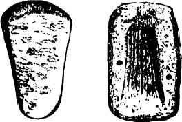 Метательные камни известны двух родов. Одни представляют простые куски кремня, лишь слегка выровненные. Другие же имеют вид круглых, несколько сплющенных шариков, из которых некоторые отделаны чрезвычайно тщательно.