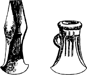 Б. Кельты с отворотами. Так называются топоры, у которых края при содействии молота отгибаются к одной стороне, образуя отвороты различной величины, доходящие иногда почти до лезвия. Размер и форма таких топоров очень разнообразны. Некоторые изобилуют украшениями, и в этом отношении особенно замечательны ирландские.