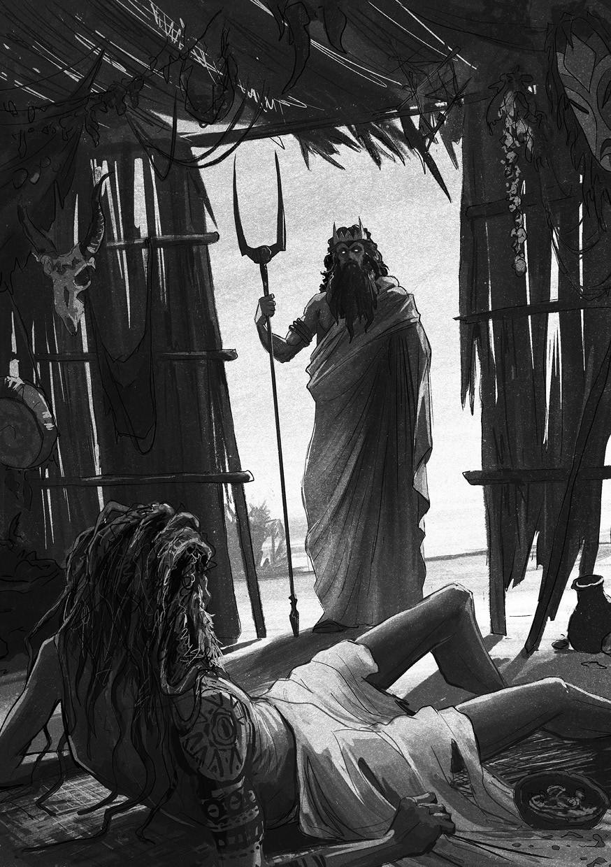По песчаной косе к берегу Кораллового моря не спеша шел мужчина. Путник был немолод, однако его черная как смоль борода была лишена седины, а правая рука крепко и уверенно сжимала позолоченные двузубые вилы, на которые он то и дело опирался.