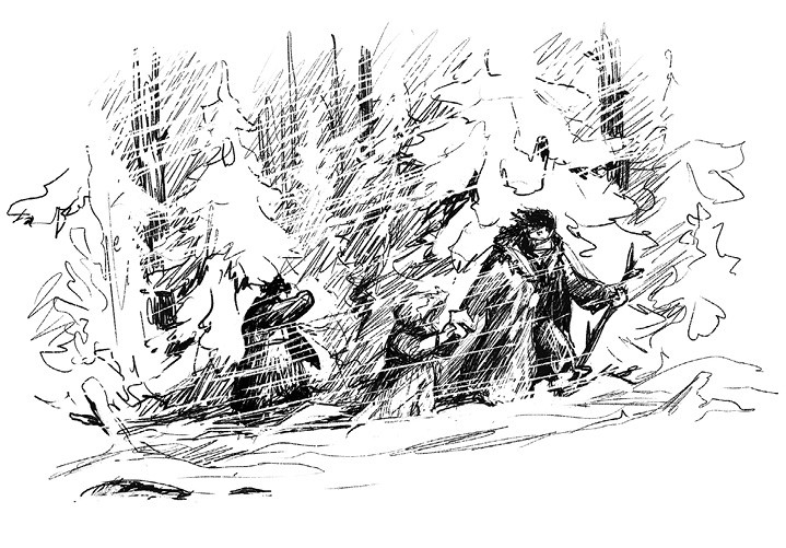 Метель усиливалась. Разъяренные порывы ветра бросали ему в лицо снежную крупу, обжигая щеки и заставляя слезиться глаза. Надо было во что бы то ни стало добраться до леса. Там, под защитой деревьев, у них будет шанс выжить. Здесь же, в открытом поле, их ожидала верная холодная смерть.