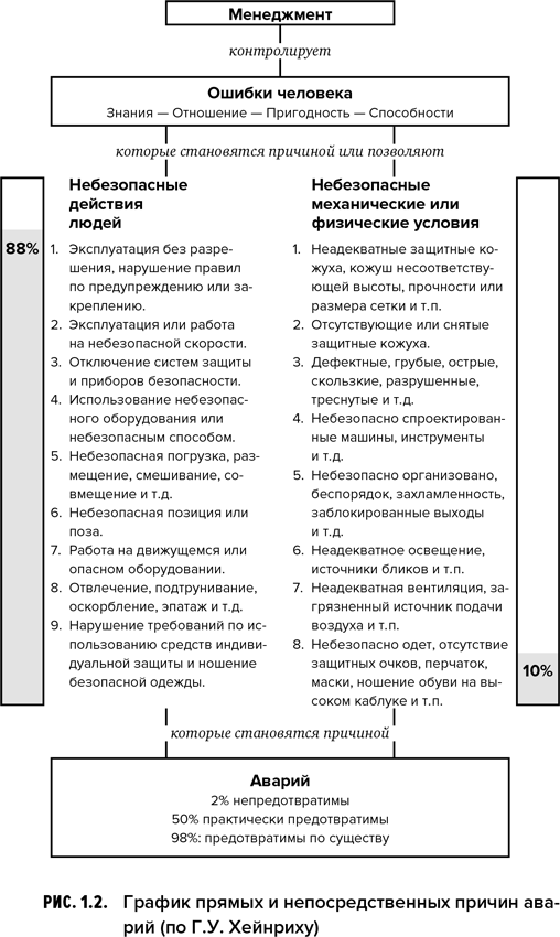 Следующий тезис, который важен для предмета нашей книги и который был высказан Г. У. Хейнрихом, заключается в том, что основной причиной (88 %) несчастных случаев на рабочем месте являются небезопасные действия работника – как правило, самого́ пострадавшего. Этот тезис позволил работодателям и консультантам неизменно утверждать: во всем виноват работник (рис. 1.2).