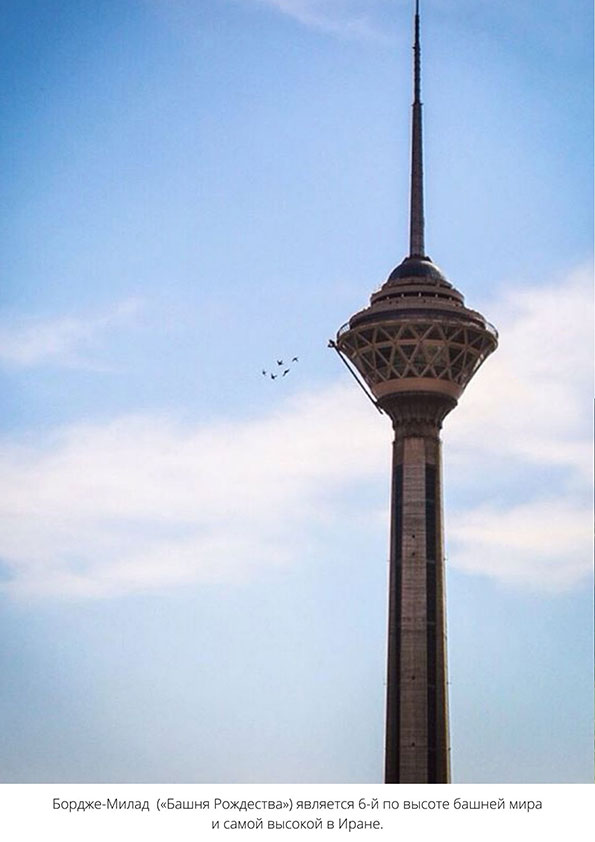 Бордже-Милад («Башня Рождества», построенная на северо-западе Тегерана, составляет 435 м в высоту и является 6-й по высоте башней мира и самой высокой в Иране. Площадь купола башни – 23 000 кв. м, что делает его одним из самых больших по масштабу полезной площади в мире среди сооружений подобного рода.