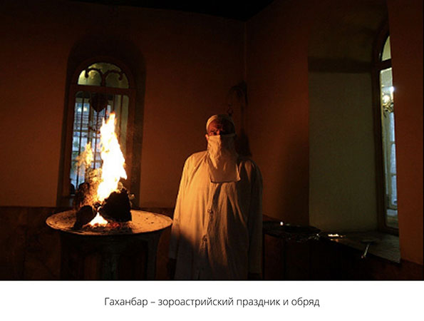 Согласно верованиям зороастрийцев, Ахура-Мазда (единый Бог) создал мир в течение 6 дней (фаз), каждый день создавая одну из стихий или те или иные живые существа: небеса, воду, землю, растения, животных и человека. Вот почему приверженцы зороастризма отмечают Сотворение мира с помощью 6 праздников («гаханбаров») – 6 раз в год. Каждый из гаханбаров длится по пять дней.