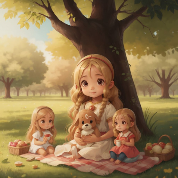 Aria was excited to have a picnic with her favorite dolls, Barbara, Millie, and Clara. She packed a basket with sandwiches, fruits, and juice. Aria loved spending time with her dolls. They were her best friends. She decided to go to the park nearby. The sun was shining brightly. It was a perfect day for a picnic.