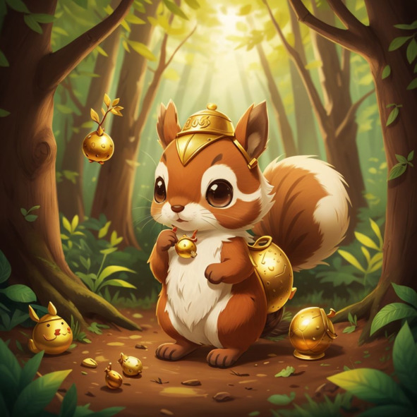 One sunny morning, a curious squirrel named Sammy found a shiny object in the forest. He picked it up and realized it was a golden acorn. Excited, he ran to Penelope to show her. «This is no ordinary acorn,» Penelope said with a smile. «It’s a magical acorn that can grant one wish.» Sammy’s eyes sparkled with excitement. «What should I wish for?» he asked. Penelope told him to think carefully, as wishes are very powerful.