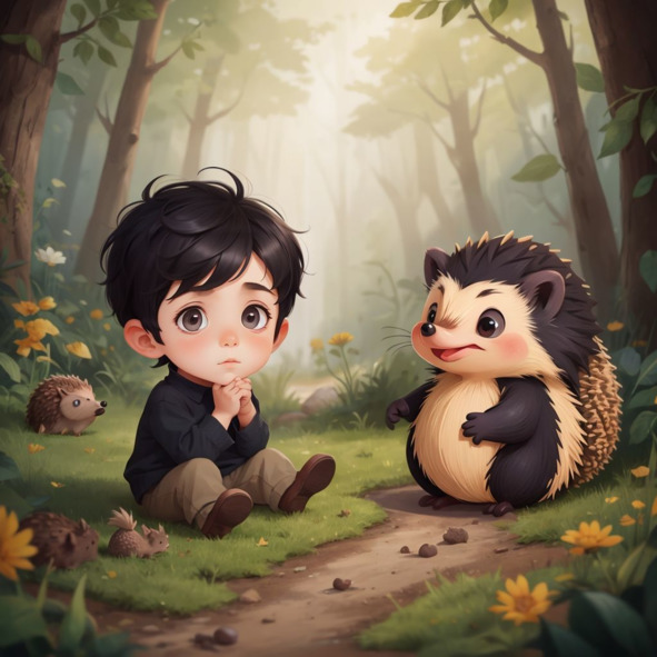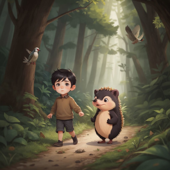 Одним солнечным утром Александр играл на заднем дворе. Он заметил что-то маленькое и колючее, движущееся около кустов. Это был еж! Александр осторожно подошел и представился. Еж ответил: «Привет, меня зовут Яков». Они быстро подружились. Александр был рад новому другу. Они решили вместе исследовать лес.
