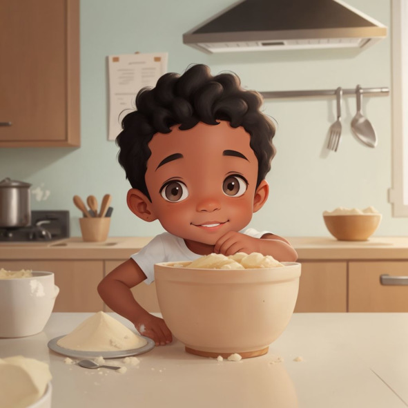 Все ингредиенты были добавлены и пришло время смешивать. Джейден использовал деревянную ложку и размешивал со всей своей силой. Тесто было густым и липким. Его мама показала ему, как его нужно замешивать медленно и равномерно. Джейден наблюдал, как тесто начало собираться в единое целое. Это было похоже на волшебство. Он был очень горд собой.