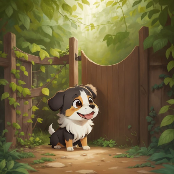 Майкл и Элла наткнулись на высокие старые ворота, покрытые виноградными лозами. За воротами они увидели сад, полный ярких цветов и фруктов. Майкл со скрипом распахнул ворота. Они вошли внутрь и почувствовали прохладный ветерок. Сад казался заброшенным, но волшебным. Множество растений цвели вокруг. Элла с любопытством обнюхивала все вокруг.