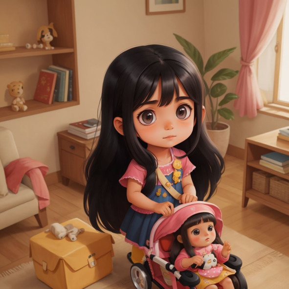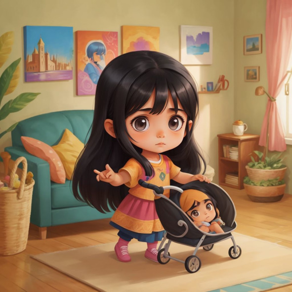 Вайолет любила своих кукол больше всего на свете. Каждый день она катала их в своей маленькой коляске. Она представляла, что они вместе отправляются на поиски грандиозных приключений. Однажды, солнечным утром, Вайолет решила взять своих кукол в особое путешествие. Она хотела показать им каждую комнату в квартире. С широкой улыбкой она посадила своих кукол в коляску. Приключение вот-вот должно было начаться!