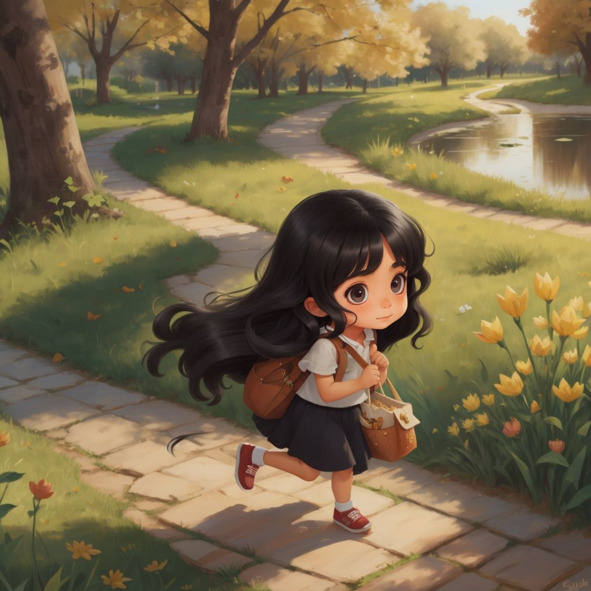 Hannah and her grandmother walked hand in hand to the park. The sun was shining brightly, and the birds were singing. Hannah skipped along the path, her bag of crumbs swinging by her side. She could see the pond in the distance. The water sparkled like diamonds. Hannah felt a flutter of excitement in her tummy.