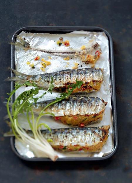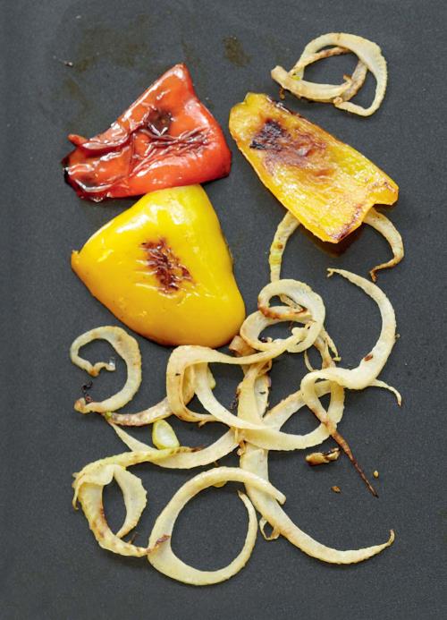В большой миске смешайте 150 мл оливкового масла с 2 ст. л. пастиса (анисовой водки) (30 мл) и соком 1 лимона. Добавьте 1 ст. л. с горкой семян фенхеля и веточку лимонного тимьяна. Посолите, поперчите и все хорошо перемешайте.