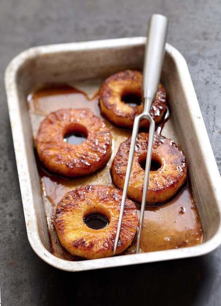 Очистите и нарежьте 2 зубчика чеснока. В сотейнике доведите до кипения 2 ст. л. жидкого меда с 3 ст. л. соевого соуса (50 мл). Перелейте смесь в миску; добавьте 150 мл ананасового сока и измельченный чеснок. Посолите, поперчите, хорошо перемешайте.