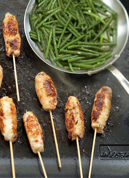 Слегка смажьте поверхность планчи маслом, нагрейте до средней температуры. Выложите котлетки и обжарьте в течение примерно 15 минут, время от времени переворачивая. Подавайте со стручковой фасолью.