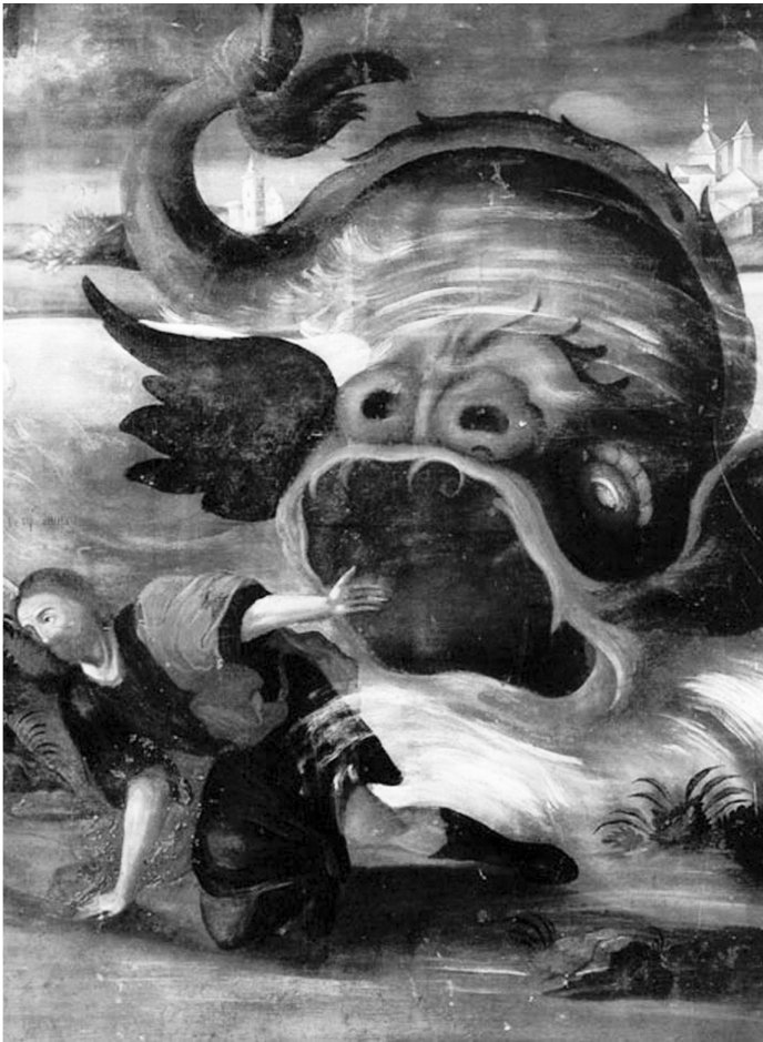 Так мы быстрее добились некоторой известности.История такова: я отказался исполнить повеление Гос —пода и бежал в Малую Азию. На корабле через Яффу.Тогда Господь наслал бурю, матросы сбросили меня вморе, где меня проглотил кит и через три дня доставилсюда.ЭСКАР
