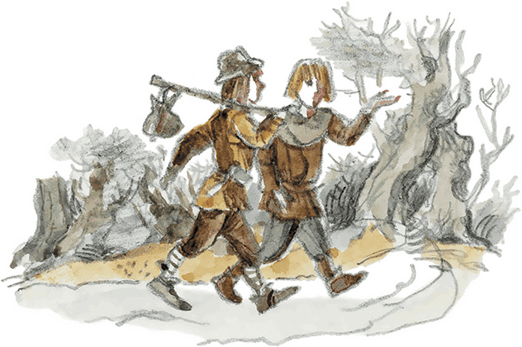 Поэтому старшим двум мальчикам часто приходилось бродить из деревни в деревню, чтобы заработать или выпросить себе кусок хлеба. Так, странствуя с мешком за плечами, узнали мальчики все горные дорожки и лесные тропинки.