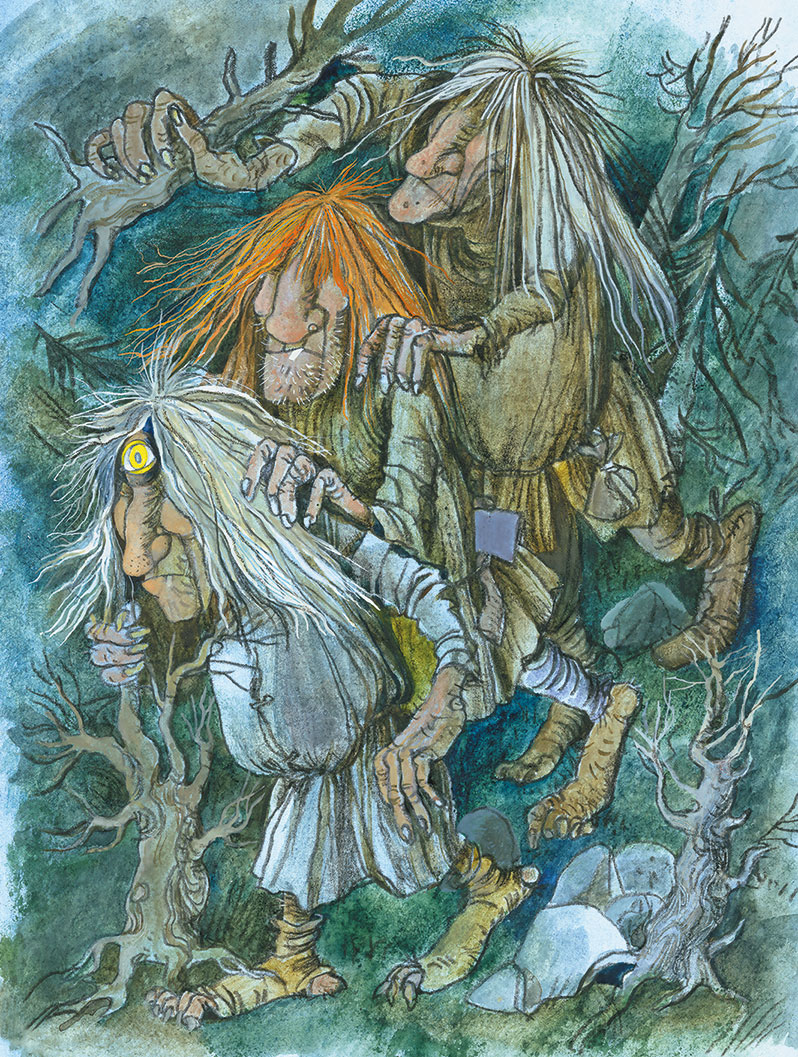– Берегись, мальчишка! – закричали тролли – Отдавай наш глаз, а не то мы превратим тебя в камень или пень.