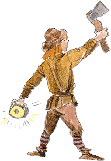 – Смотри! Идёт Пер Гюнт со своей огненной палкой. Спасай скорее телёнка! Не то плохо ему будет!
