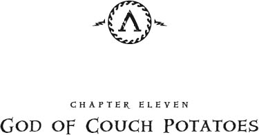 “Behold, the Loculus of Pigeon Droppings,” Cass mumbled, as we slowly walked around the plaza. “Held aloft by Zeus, God of Couch Potatoes, now approaching his record two millionth consecutive hour of TV viewing.”