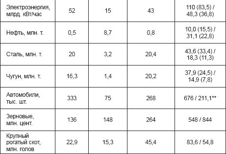 Таблица 1. Основные показатели экономического потенциала Германии (годовое производство в середине 1941 г.) и СССР (годовое производство в конце 1940 г.)[82].