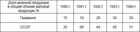 Таблица 4. Доля военной продукции в общем объеме валовой продукции Германии и СССР[91]
