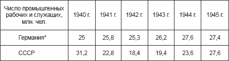 Таблица 5. Использование трудовых ресурсов в Германии и СССР в период 1940 – 1945 гг.[97]