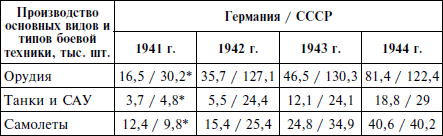 Производство основных видов боевой техники Германией и СССР в 1941–1944 годах[85]