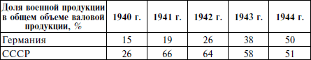 Доля военной продукции в общем объеме валовой продукции Германии и СССР[94]