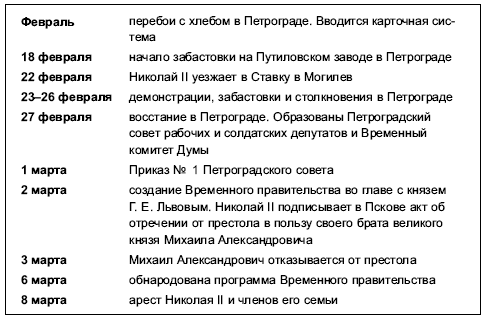 В такой обстановке депутаты Думы не подчинились императорскому указу и составили Временный комитет, назначивший своих комиссаров во всех правительственных учреждениях. Тогда же в том же Таврическом дворце собрались представители рабочих и солдат, образовавшие Петроградский совет рабочих и солдатских депутатов. Председателем его был избран депутат-социалист Н. С. Чхеидзе, до этого отказавшийся войти в состав Временного комитета Думы. Две новых власти тут же оказались на грани конфликта, поскольку каждая уже назначила своего коменданта Петрограда. Однако Совет счел за лучшее отступить, предоставив инициативу Думе. Та, в свою очередь, не могла не считаться с Советом, потому что солдатские депутаты уже добились от Совета Приказа № 1: теперь часть столичного гарнизона подчинялась Совету, контроль над вооружением переходил к солдатским комитетам, а решения Думы подлежали исполнению лишь в том случае, если не противоречили решениям Совета. Не желая обострения конфликта, 1 марта лидеры Думы и Совета заключили соглашение об образовании Временного правительства, которое возглавил князь Г. Е. Львов. В составе его преобладали конституционные демократы, единственным социалистом в нем был А. Ф. Керенский, назначенный министром юстиции. Фактическим лидером нового правительства стал министр иностранных дел П. Н. Милюков.