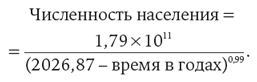 Если бы только Мальтус мог знать, насколько был не прав! Оказывается, население планеты растет еще быстрее! В 1960 году в журнале Science была опубликована статья физика из Иллинойсского университета в Урбане-Шампейне Хайнца фон Ферстера и его коллег Патрисии Мора и Лоуренса Амиота[12], где на основе исторических демографических данных с самого начала нашей эры было выведено эмпирическое уравнение роста численности населения Земли, прозванное уравнением Судного дня: