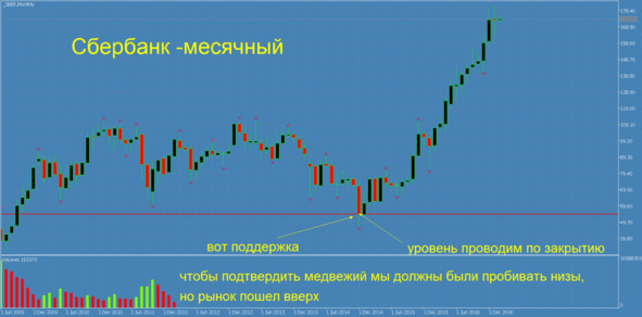 По поводу сопротивления и поддержки есть вопросы, не понял как определять уровни открытия и закрытия месячной свечи что бы линии по ним выставить.