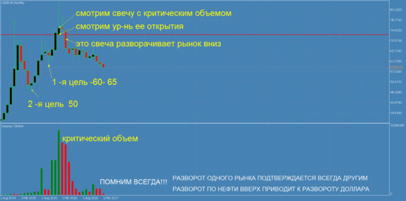 ВЕРХИ И НИЗЫ – ЭТО СВЕЧИ С КРИТИЧЕСКИМ ОБЪЕМОМ НА МЕСЯЧНОМ ГРАФИКЕ.