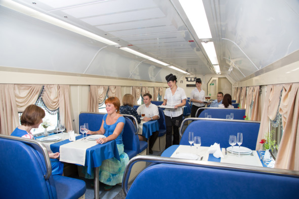 – Ну, я думаю, в вагоне-ресторане не так много будет людей, однако зарезервировать столик будет не лишним. Прямо на их сайте можно забронировать столик, очень удобно. Сейчас я забронирую. На какое время забронировать?