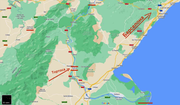 Здесь = Тортоса, а ТАМ = Барселона…