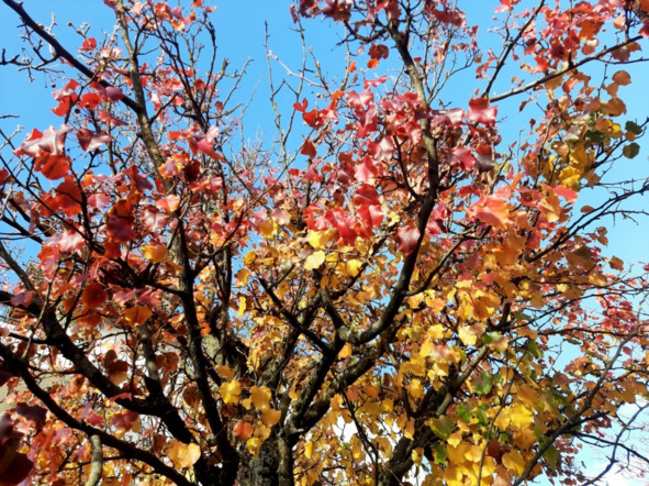 На это дерево-«триколор» обратил особое внимание из-за того, что листья на нём трёх цветов одновременно: зелёные, жёлтые и красные = «светофор» получается…